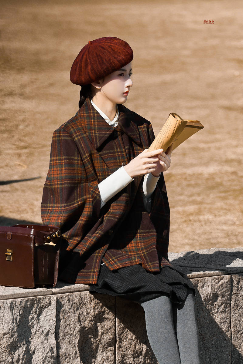 如果说穿搭是造型的骨架,那么手中的书卷就是让整个画面“活起来”的灵魂。路透图中,宋祖儿并非简单地将书拿在手中,而是微微低头,目光似乎轻落在书页上,神情专注又放松。这种自然流露的状态,瞬间让她与“画报少女”的形象无缝贴合——不是刻意营造的文艺感,而是由内而外散发的沉静气质。有网友评论:“宋祖儿这组图把‘腹有诗书气自华’具象化了”“红色格子大衣配书卷,是冬日里最温暖的风景”。