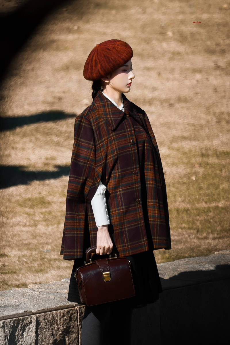 红色格子大衣在时尚圈向来是“氛围感神器”,但它对穿着者的气质要求极高,稍有不慎就会显得臃肿或俗气。而宋祖儿的演绎无疑给出了高分答案。她选择的这款大衣,红色与灰色格子比例恰到好处,饱和度适中的红色既保留了热烈的生命力,又不会过于张扬;灰色的加入则为整体造型增添了沉稳质感,让复古韵味更加浓郁。大衣采用利落的H型剪裁,长度及膝,既修饰了身形比例,又不会显得拖沓,完美契合她娇小玲珑的身材特点。